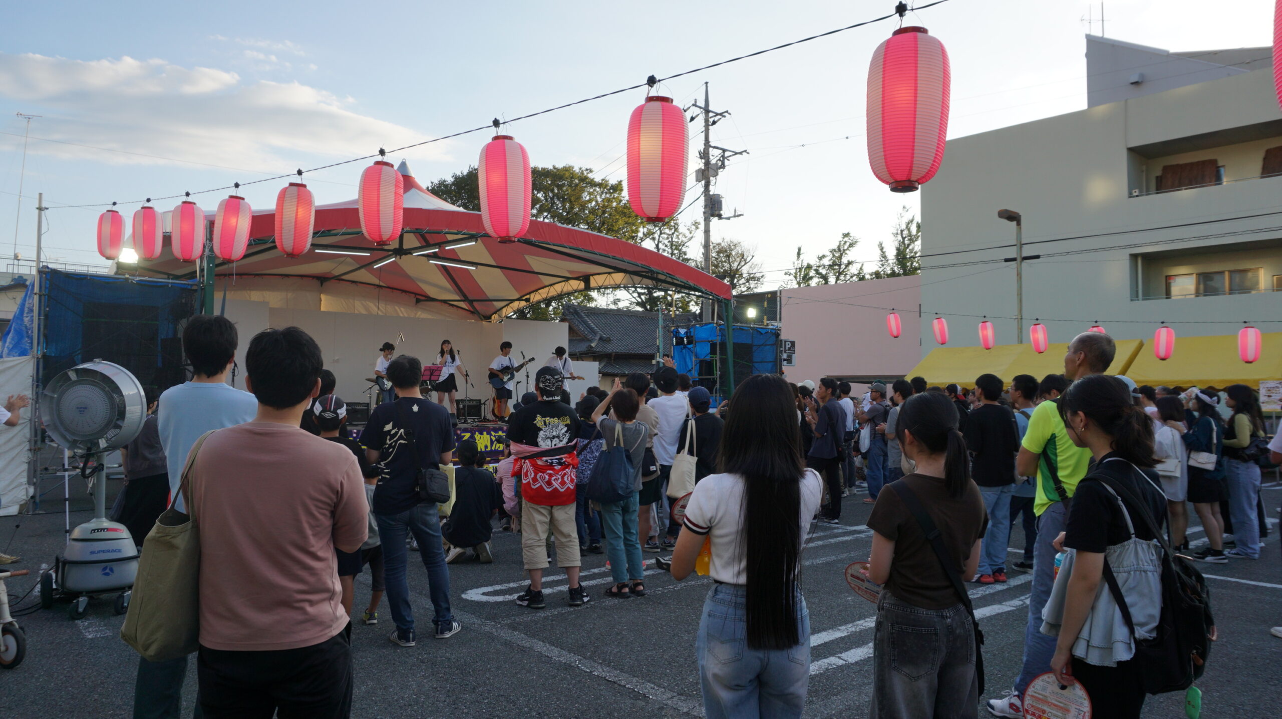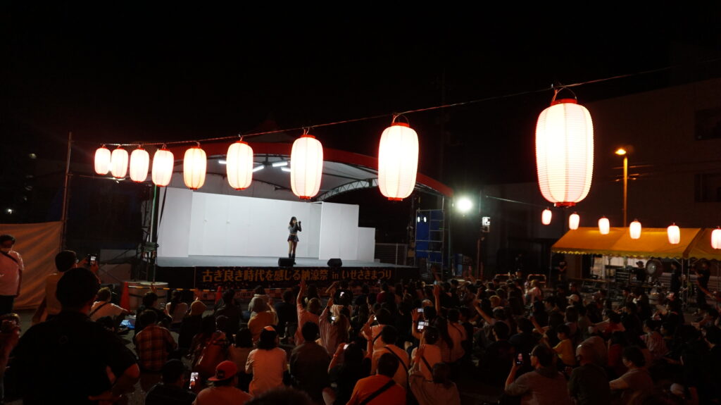 土曜日は商工会議所青年部によるオープニングセレモニーにはじまり、姉妹都市文化使節団公演では姉妹都市のスプリングフィールドより来られた方が弾き語りを披露され、昔の遊び体験では社会福祉協議会と老人クラブ連合会にご協力いただき、けん玉やコマ回しなどの昔の遊びを通して、子供と高齢者が楽しみながら世代間交流を行っていました。伊勢崎野音では事前に応募してくださった6組の市民によるバンドが、それぞれ熱いステージでオーディエンスを沸かせてくださいました。最後のライブコンサートでは浜野はるきさんによる歌で大盛況のまま1日目を終えることができました。